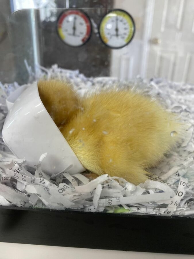 Kaczątko wypiło całą wodę z kubka i zasnęło w nim