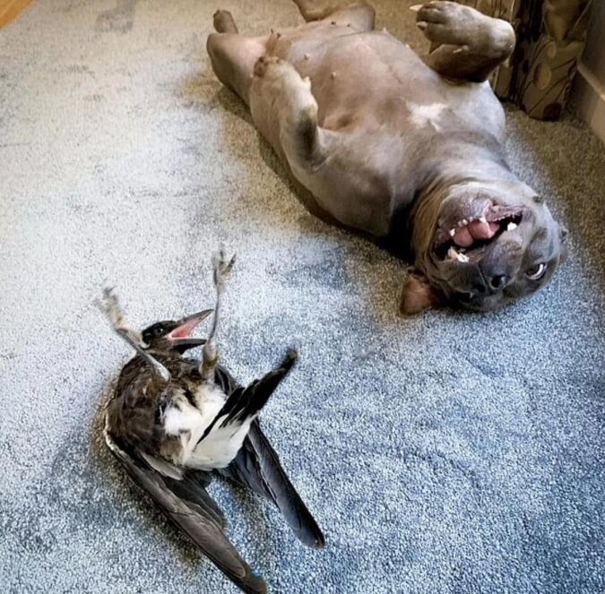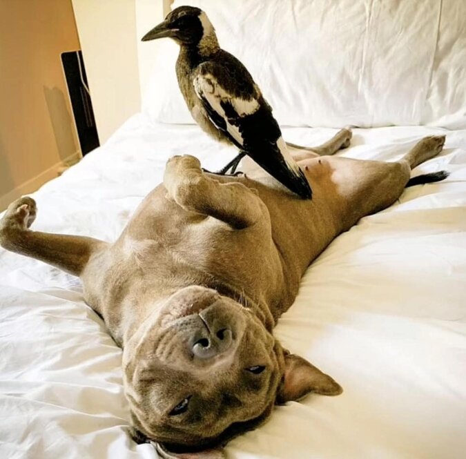 Nic dziwnego, prawda? Ale jest jedno ale, Peggy to staffordshire terrier, a Molly to dzika sroka.