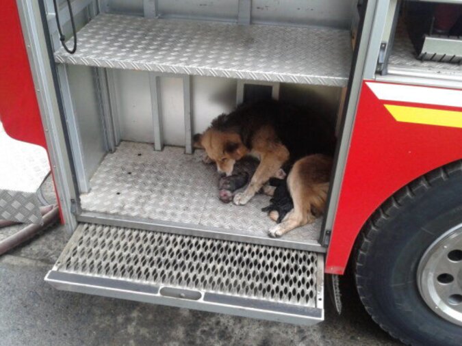 Amanda ma bystry umysł, domyśliła się, że najbezpieczniejszym miejscem dla jej dzieci jest samochód strażaków, który przyjechał na wezwanie. Jedno z maluchów zmarło od poparzeń, pozostałe psy czują się świetnie.