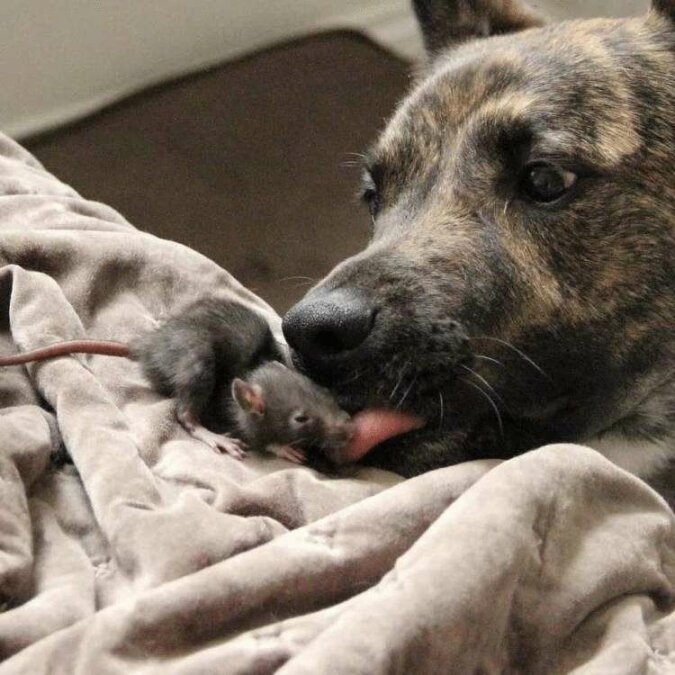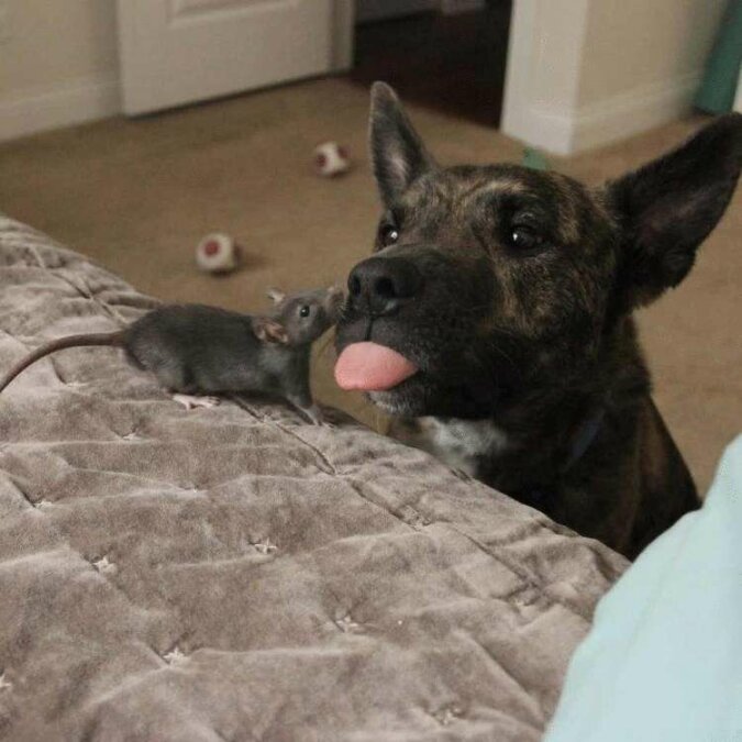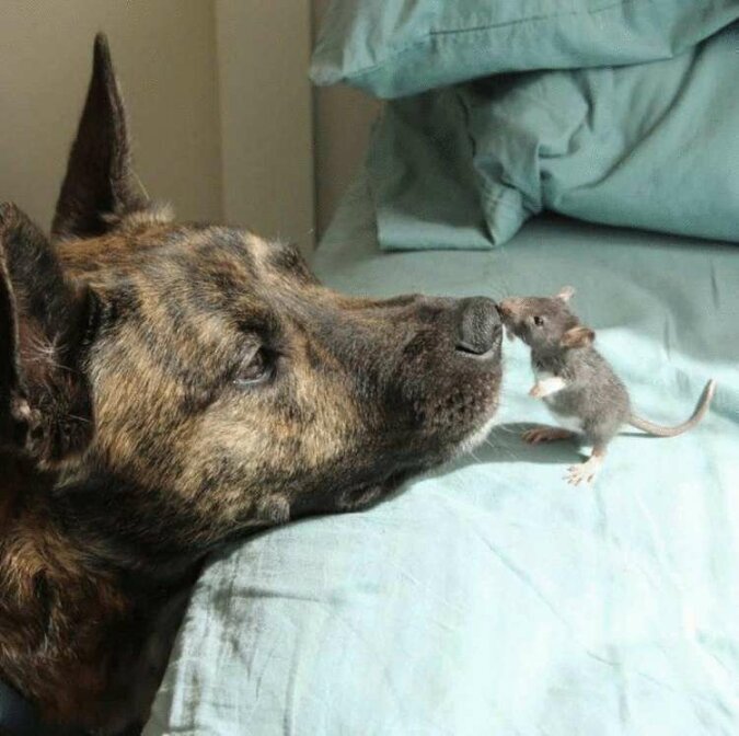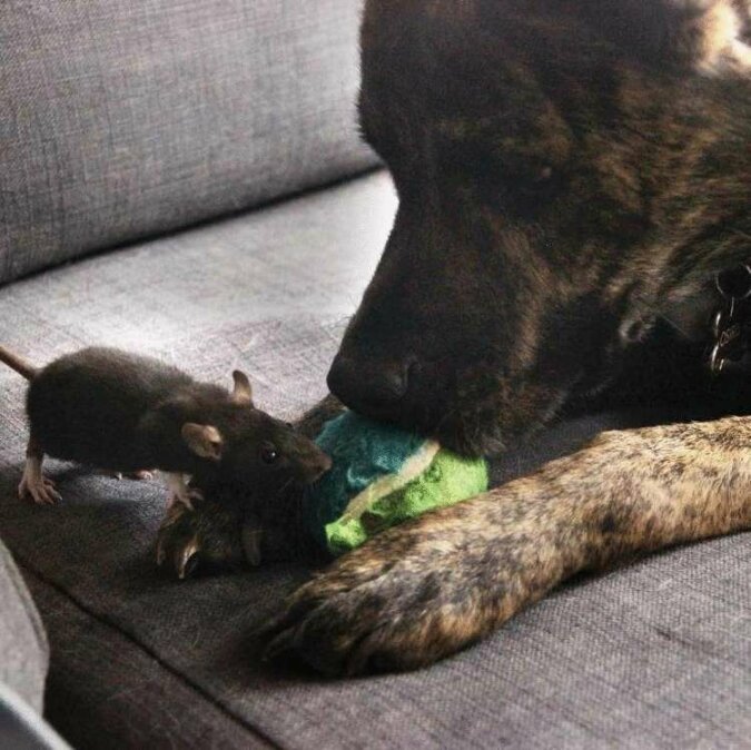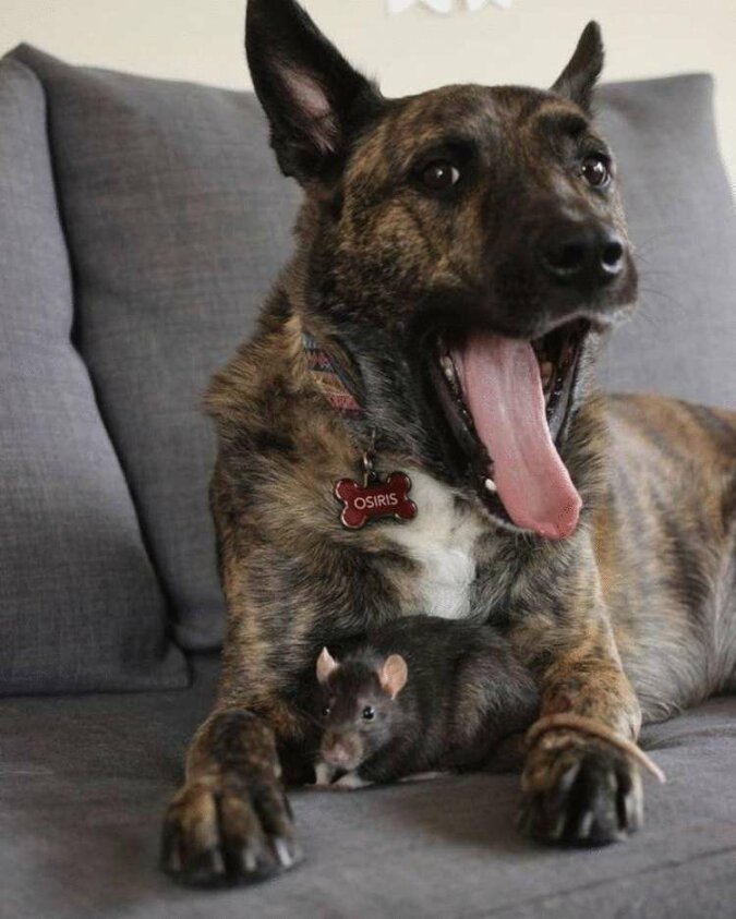 Jako pies terapeutyczny Ozyrys wielokrotnie uczestniczył w leczeniu ludzi, a nawet innych zwierząt. Ale to byli pacjenci, których spotykał zgodnie z harmonogramem i nie z własnej woli, ale z zalecenia lekarza. Z drugiej strony pies potrzebował prawdziwej bratniej duszy i chociaż wielu początkowo było sceptycznie nastawionych, mały szczur i duży pies zdołali się zaprzyjaźnić!