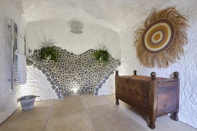 Zewnętrznie mieszkanie Angelo wciąż przypomina historię jaskini. Chociaż cały dom jest ozdobiony nowoczesnymi materiałami.