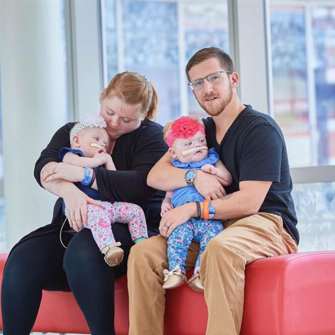 Dzieci urodziły się 10 tygodni przed terminem, każde z nich ważyło 900 gramów. Ale najgorsze było to, że mieli spleciony mózg, a lekarze nie dawali żadnych prognoz.