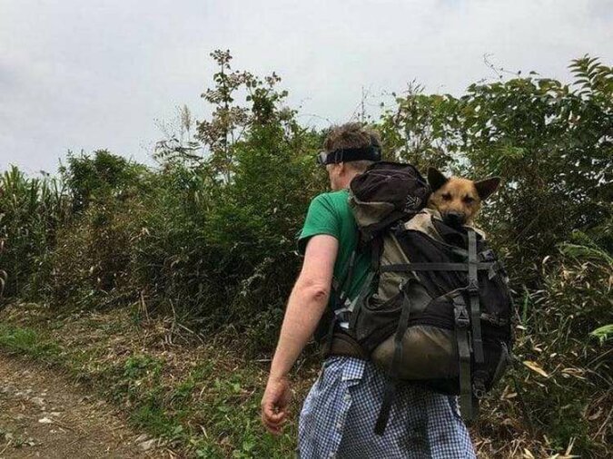 Przez cały czas w górach pies nie wydawał dźwięku. Siedział cicho za plecami Seana i Rose (nosili go na zmianę), jakby zdając sobie sprawę, że ci ludzie robią dla niego wszystko, co możliwe!