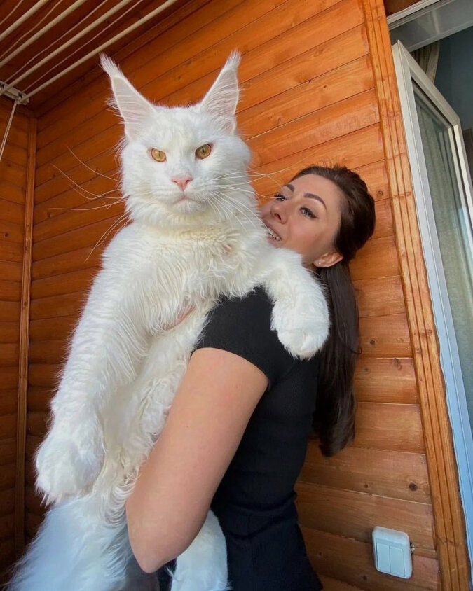 Ale Maria zauważyła, że jej kot szybko rośnie: wyraźnie szybciej niż reszta kotów. Do roku ciało zwierzęcia osiągnęło naprawdę rekordowy rozmiar - około 1,5 metra długości od pyska do czubka ogona. A waga wynosiła aż 15 kilogramów. A to zdecydowanie więcej, niż powinno być.