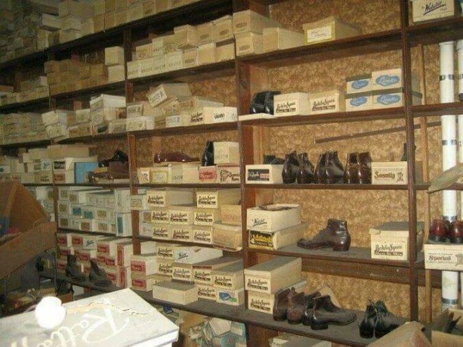 W zakurzonym magazynie przechowywane są setki różnych par butów, kozaków i mokasynów dla kobiet i mężczyzn. Niektóre modele można nosić nawet teraz, są buty, które w tej chwili wyglądają trochę staromodnie.