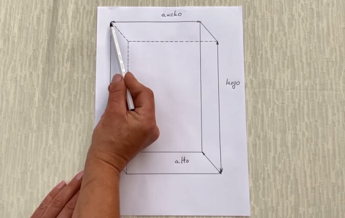 Złóż prostokąt na ćwiartki. Wszystkie wolne rogi znajdują się w jednym miejscu. Zadaniem jest usunięcie nadmiaru tkaniny w każdym z rogów. W rzeczywistości musisz zaznaczyć kwadrat, którego bok jest równy wysokości materaca, biorąc pod uwagę jedno zagięcia.
