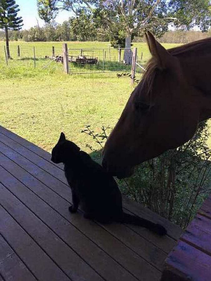 „Są najlepszymi przyjaciółmi. I całkowicie sobie ufają” – powiedziała Jennifer Boyle. „Mam cztery konie i dwa koty.