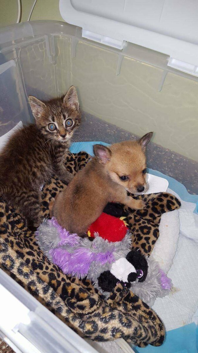Tak się złożyło, że mały kotek Chikki i maleńki szczeniak Lil Nugget trafiły w tym samym czasie do tego samego schroniska.
