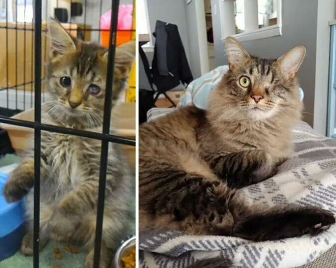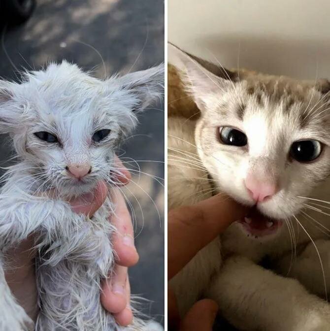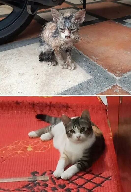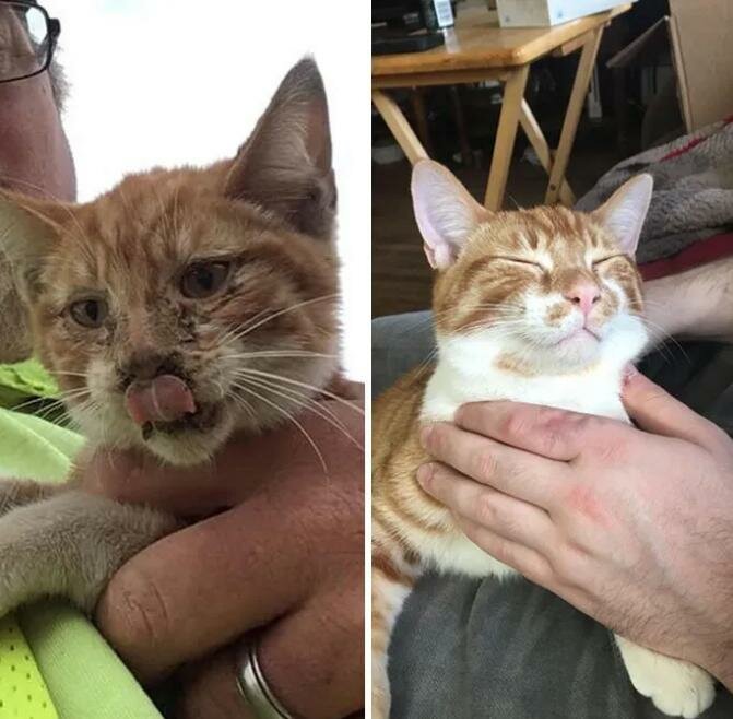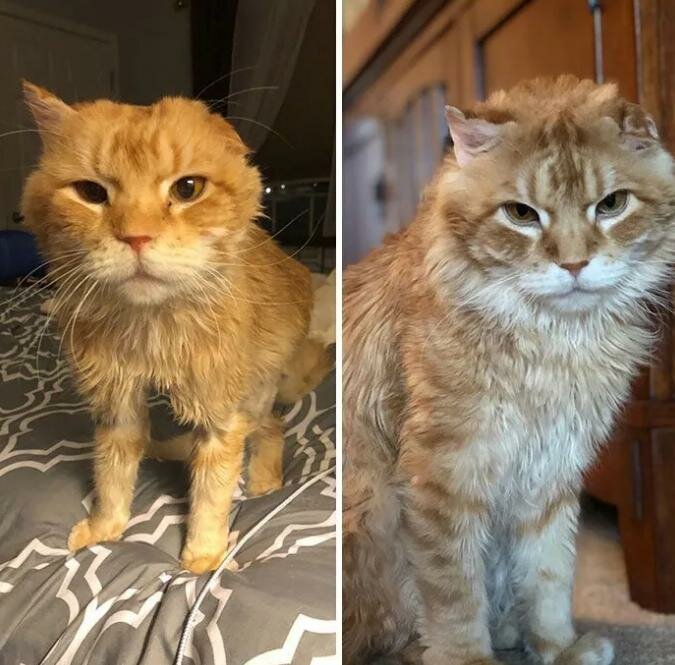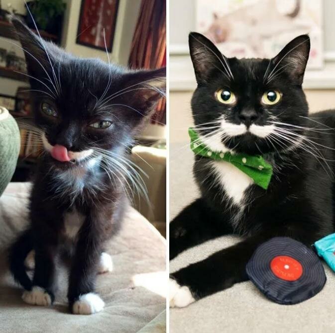 Kto by pomyślał, że z tego obdartego i smutnego kociaka wyrośnie taki przystojniak?