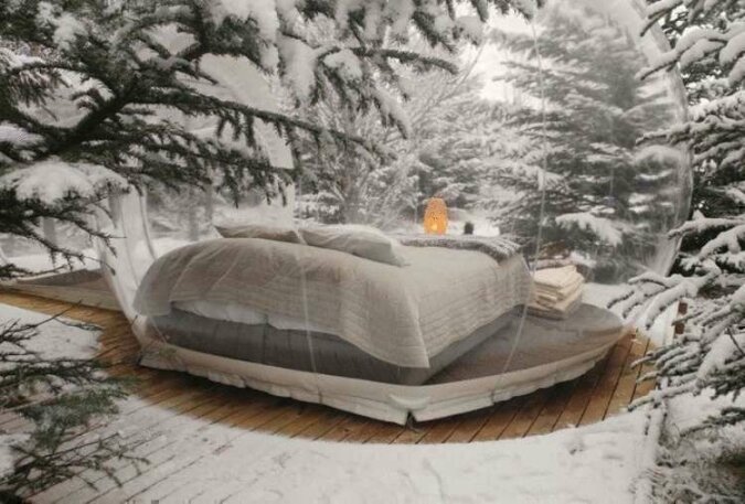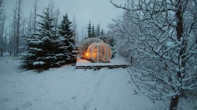 Bąble zapewniają ciepło i komfort, aby zimą zobaczyć zorzę polarną w przyrodzie.