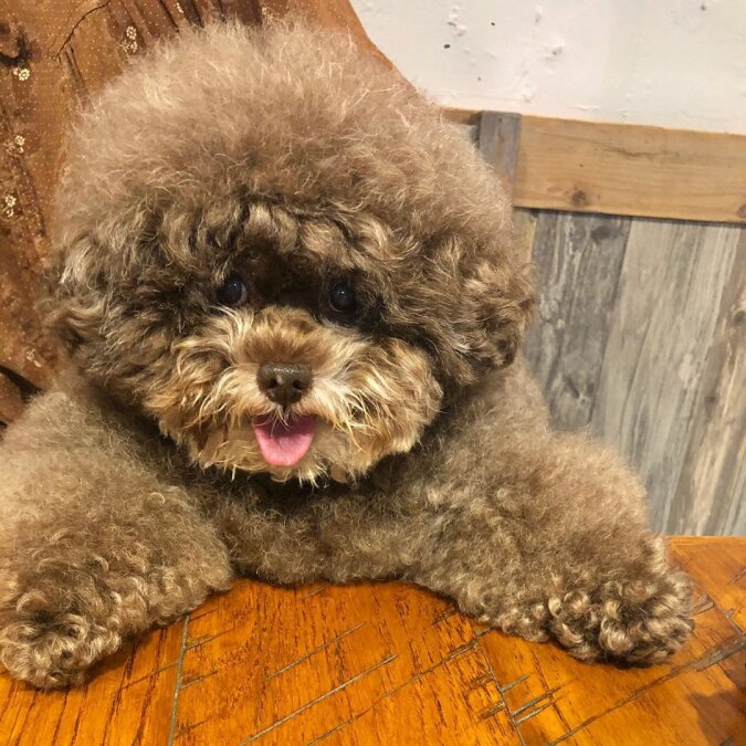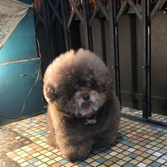 Ten dzieciak jest bardzo podobny do małego kudłatego człowieka. Ponadto właściciele są zaskoczeni jego zachowaniem, ponieważ wcale nie siedzi jak pies, lubi patrzeć w lustro, a nawet się uśmiechać. Właściciele przyznają, że czasami ma taki wyraz twarzy, czyli pyszczka, jakby miał coś powiedzieć, a potem przypomina sobie, że jest jeszcze psem i uspokaja się.