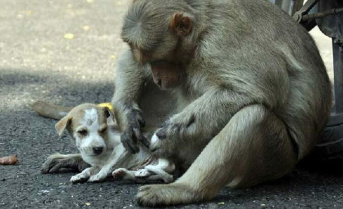W jednym z indyjskich miast małpa rezus adoptowała szczeniaka i najwyraźniej zaczęła uważać go za swoje dziecko, inaczej jak wytłumaczyć jej pełen szacunku stosunek do tego czworonożnego dziecka. Dzielna "mama" pilnuje szczeniaka i chroni pieska przed bezpańskimi psami. Miejscowi byli tak pod wrażeniem tej historii, że zaczęli zostawiać miski z jedzeniem dla dwóch niezwykłych przyjaciół. Ku zaskoczeniu wszystkich małpa była tak opiekuńcza, że nawet pozwoliła psu jeść pierwszym!