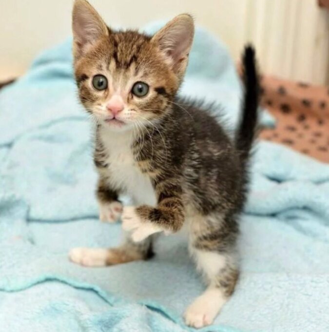 Kropka miała szczęście, że w klinice weterynaryjnej pracowała dziewczyna, która zlitowała się nad zwierzęciem i umieściła je w schronisku. Tam zwierzę zostało zbadane i ustalono, że nic nie można zrobić z łapami, ale osobliwość w żaden sposób nie wpłynie na długość jego życia, potrzebna jest tylko normalna opieka.
