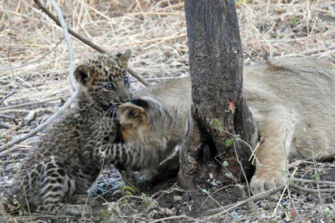 Młode zaakceptowały lamparta jako swojego, prawdopodobnie dlatego, że nie wiedzą zbyt wiele o otaczającym ich świecie. Odbywa się to w Azji i tam lwice mają zwyczaj odchodzić przed porodem i wychowywać dzieci w pojedynkę, aby dorosłe lwy nic im nie robiły. Cała rodzina kojarzy lamparta z własnym gatunkiem – bezradnym, bezdomnym dzieckiem, które potrzebuje pomocy. I zapewnią to!