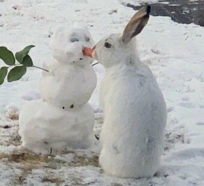 Bez cienia wątpliwości puszyste zwierzę zbliżyło się do bałwana i zaczęło celowo wcinać marchewkę. Nie chwycił ją i nie zabrał, ale zjadł od razu, na oczach rodziny Bryant, która nie zapomniała włączyć kamery. Widok jest jak w dowcipie lub bajce – kiedy jeszcze to zobaczysz?