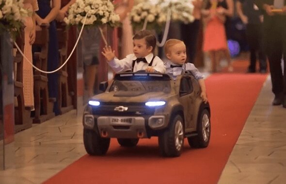 Szczególnie poruszeni wsród wszystkich obecnych byli dwaj mali chłopcy, którzy prowadzili maleńki samochód elektryczny. Cynthia nie mogła powstrzymać łez i wybuchnęła płaczem. Sam Jose ledwo mógł się powstrzymać. Najstarsze z dzieci wręczyło obrączki młodej parze.