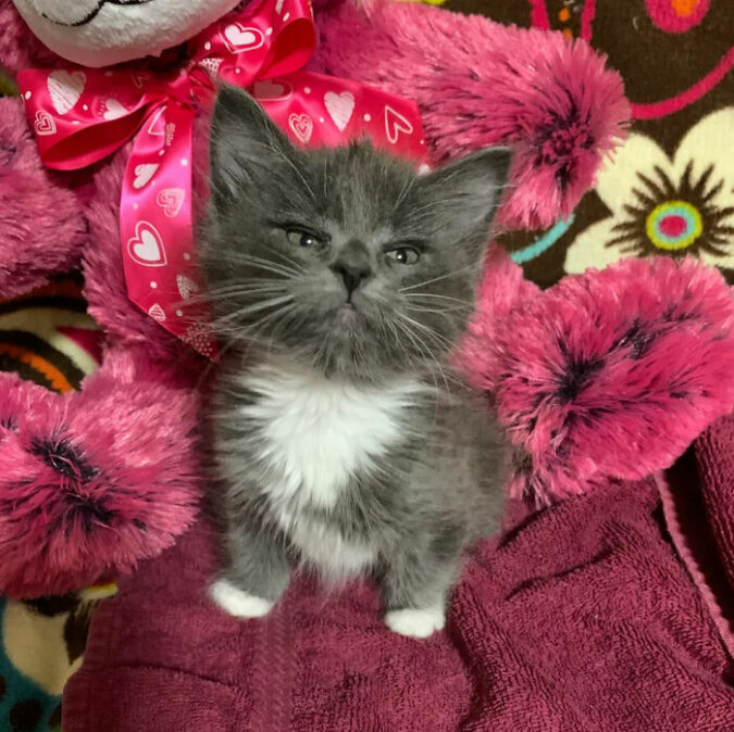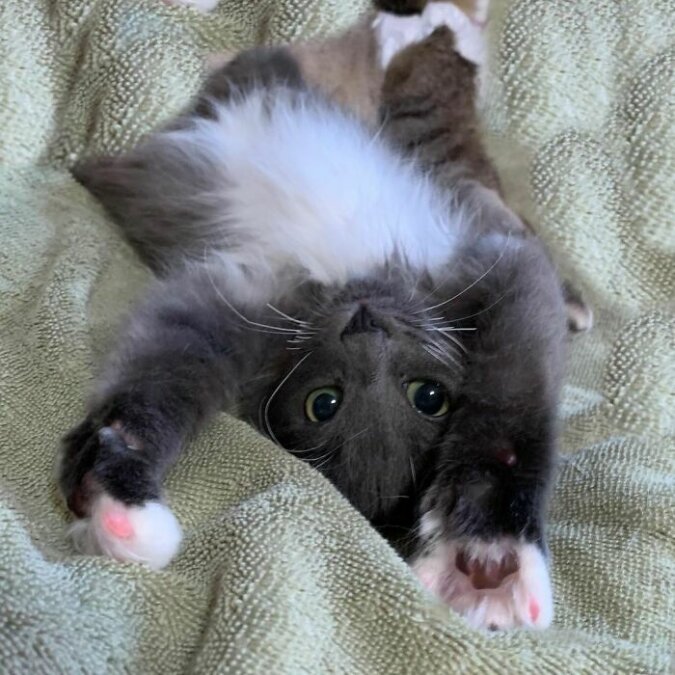 Sześć miesięcy temu w Anchorage w USA życzliwi ludzie wzięli z ulicy kociaka, który był bardzo chory, ale wciąż wyglądał tak uroczo i wzruszająco, że sama jego obecność dotykała serca. Niestety, weterynarze natychmiast postawili straszną diagnozę, kot urodził się ze złamanym kręgosłupem. Z tego powodu jej tylne łapy pozostały skręcone, ale to nie powstrzymało dziecka przed znalezieniem swojego przeznaczenia!